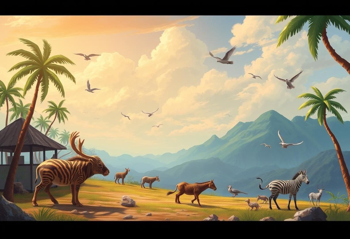 ![]() Apes, monkeys, reptiles, elephants, lions, rhinoceros, birds, lizards, frogs, snakes. |