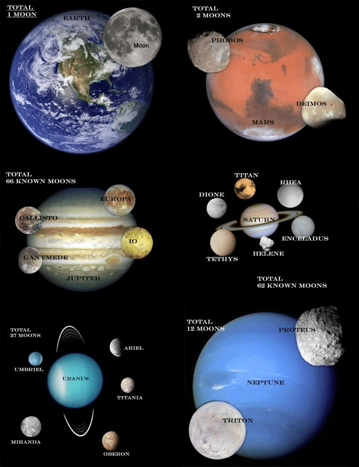 Fill in the blank: The solar system consists of the sun, eight planets, and their ___. |