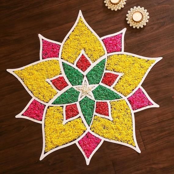 I am a colorful design made on the ground, often symmetrical, and I am called a ___. |