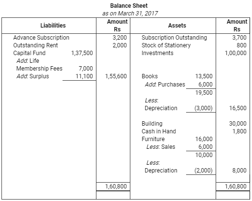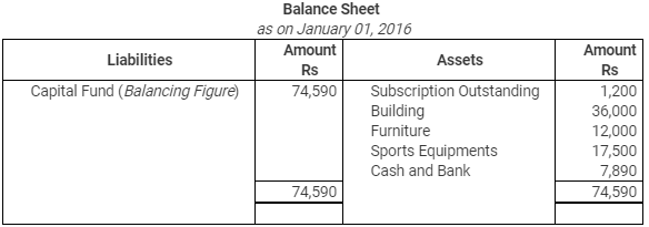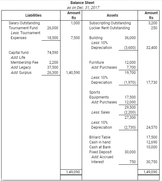 On January 1, 2017, club has Building Rs 36,000, furniture Rs 12,000, Sports equipments Rs 17,500. Depreciation charged on these items @ 10% (including Purchase).