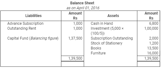 On April 01, 2016 the club owned furniture Rs 15,000, Furniture valued at Rs 22,500