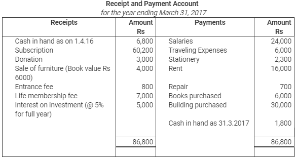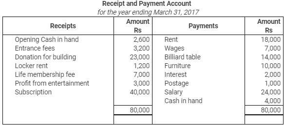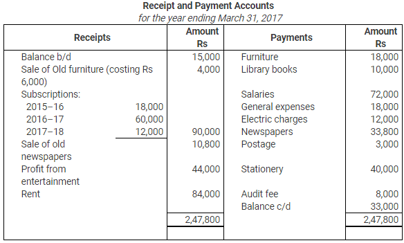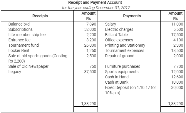 Q.12. From the following Receipt and Payment Account prepare final accounts of a Unity Club for the year ended March 31, 2017.