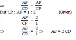 Q1: If one diagonal of a trapezium divides the other diagonal in the ratio of 1: 2. Prove that one of the parallel sides is double the other.