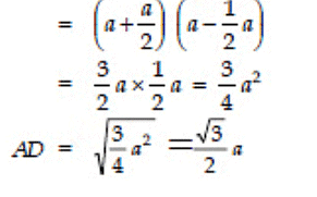Sol: We have Δ ABC in AD ⊥ BC and AB = AC = 2a. Also BC = a.