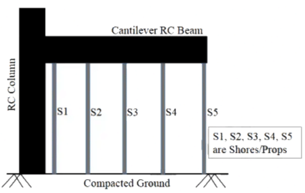 Q5: The following figure shows the arrangement of formwork for casting a cantilever RC beam. [2024, Set-1]