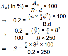 Q4: A slab panel with an effective depth of 250 mm is reinforced with 0.2% main reinforcement using 8 mm diameter steel bars. The uniform center-to-center spacing (in mm ) at which the 8 mm diameter bars are placed in the slab panel is (rounded off to the nearest integer). [2024, Set-1]