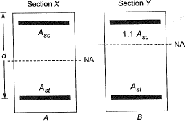 Q5: Two rectangular under-reinforced concrete beam sections X and Yare similar in all aspects except that the longitudinal compression reinforcement in section Y is 10% more. Which one of the following is the correct statement? [2018, Set-1]