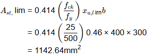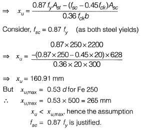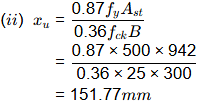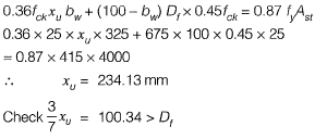 Given, Xu > 100 mm and section as under reinforced as per IS 456 : 2000