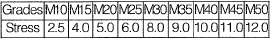 The developed stress in direct compression in various grades of concrete as per IS 456 : 2000 are tabulated below = 0.25 fck (WSM)