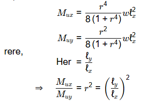Q3: A simply supported, uniformly loaded, two-way slab panel is torsionally unrestrained. The effective span lengths along the short span (x) and long span (y) directions of the panel are lx and ly respectively. The design moments for the reinforcements along the x and y directions are Mux and Muy respectively. By using Rankine-Grashoff method, the ratio Mux ' Muy is proportional to [2024, Set-2]