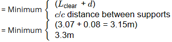 Clear span of slab = 3.30 - 0.23 = 3.07 m