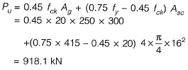 Sol: Since eccentricity effect is being neglected so column can be considered as concentrically loaded. Ultimate axial load carrying capacity of column.