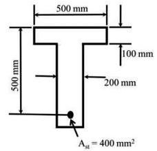 Q1: The cross-section of the reinforced concrete beam having an effective depth of 500 mm is shown in the figure (not drawn to the scale). The grades of concrete and steel used are M35 and Fe550, respectively. The area of tension reinforcement is 400 mm2. It is given that corresponding to 0.2% proof stress, the material safety factor is 1.15 and the yield strain of Fe550 steel is 0.0044 .