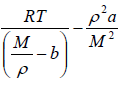 Example 3: Under what pressure will carbon dioxide of molar mass M have the density ρ at the temperature T , if given gas is obeying van der Waals gas equation.