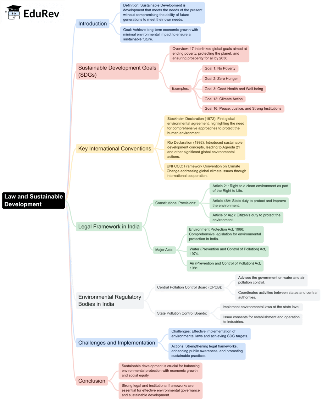 This comprehensive document covers all aspects related to Mind Map: Law and Sustainable Development.