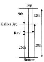 In a class of 36 students Ravi's rank from the top is 12th. Kalika ranks three places above Ravi. What is Kalika's rank from the bottom?