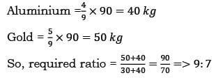 Consider two alloys A and B. 70 kg of alloy A is mixed with 90 kg of alloy B. A contains Aluminium and Gold in the ratio 3: 4, and B contains them in the ratio 4: 5 respectively. What is the ratio of Gold to Aluminium in the mixture?