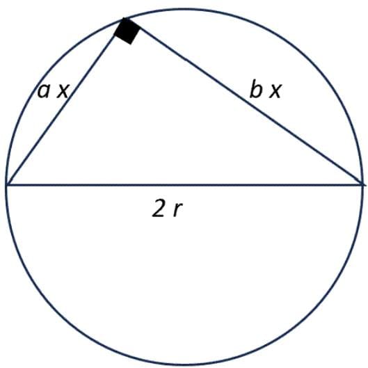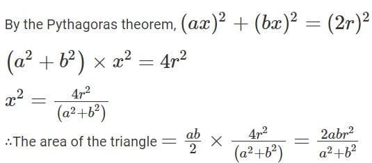 A triangle is drawn with its vertices on the circle C such that one of its sides is a diameter of C and the other two sides have their lengths in the ratio a : b. If the radius of the circle is r, then the area of the triangle is
