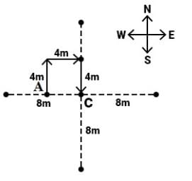 I. If a person walks 4 m towards the North from Point A and takes two consecutive right turns, each after walking 4 m, he would reach Point C, which is 8 m away from Point B.