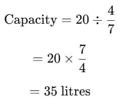A beaker is 3/7 filled with water. Another 20 litres of water is needed to fill the beaker to its brim. What is the capacity of the beaker?