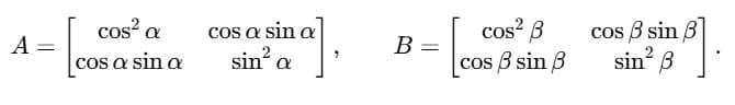 If A and B are the matrices shown in the image below and the product AB is the null matrix, then α - β is