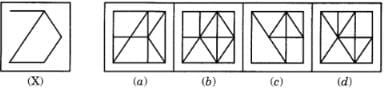 In each of the following questions, you are given a fig. (X) followed by four alternative figures (A), (B), (C) and (D) such that fig. (X) is embedded in one of them. Trace out the alternative figure which contains fig. (X) as its part.