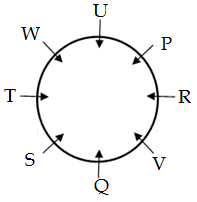 Eight friends P, Q, R, S, T, U, V and W are sitting around a circular table facing the centre. Only Q is sitting between V and S. W is third to the left of Q and second to the right of P. Only R is sitting between P and V. Q and T are not sitting opposite to each other.