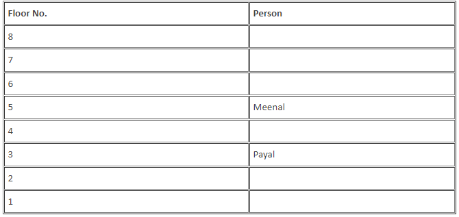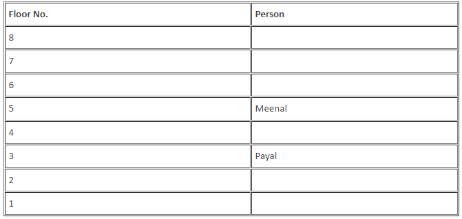 The ground floor is numbered 1, the first floor is numbered 2, and so on until the topmost floor is numbered eight. Only two persons live below the floor on which Payal lives.