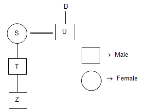 Q. If the relation between Z, T, S, U and B is indicated by Z - T - S × U - B, then how is U related to Z?