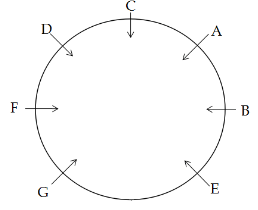 (i) Seven members A, B, C, D, E, F and G are sitting in a circle facing the centre.