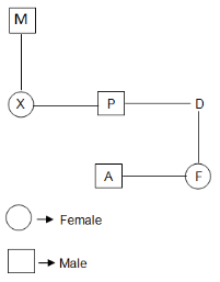 P is the brother of D. X is the sister of P. A is the brother of F. F is the daughter of D. M is the father of X. Who is the uncle of A?
