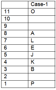 Eleven books are written by different authors, named, O, D, Z, A, l, E, J, K, B, L and P. Their books are kept on different shelves. The bottom shelf is numbered 1 and the top one is numbered 11. The book written by B is kept on the third shelf. Two books are kept between the books written by O and A. There are as many books between the books written by O and A as those between the books written by P and K. The books written by O and P are on the top and the bottom shelf, respectively. The book written by L is on the seventh shelf. The book written by P is not kept above A. The book written by E is in the middle. The book written by J is kept between the books written by E and K. The book written by I is not kept on the shelf that is numbered above 8.