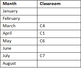 A certain school started its construction in year 2019 and eight classrooms C1, C2, C3, C4, C5, C6, C7 and C8 were built in the different months viz January, February, March, April, May, June, July and August not necessarily in same order. No two classrooms were built in the same month. More than two classrooms were built between the months in which C8 and C5 were built. One classroom was built between C6 and C4, which was built before C1. Two classrooms were built between C7 and C1, which was built in the month having 30 days. C7 was not the first built classroom in the school. C6 was built two months before C7, which was built after May. C5 was not built at last. Neither C3 nor C8 was the first classroom which was built in the school. C8 was built in the month having less than 30 days.