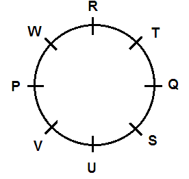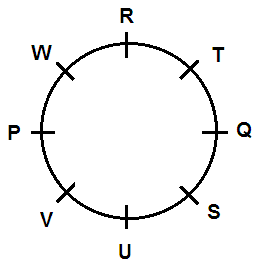 Eight friends are sitting around a circular table facing towards the centre. These friends are P, Q, R, S, T, U, V and W. R is 4th to the left of U, who is 5th to the right of T. S is 3rd to the right of P, who is not an immediate neighbour of T or U. Q is 3rd to the left of W, who is not an immediate neighbour of T. V is not an immediate neighbour of Q.