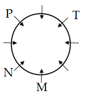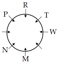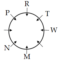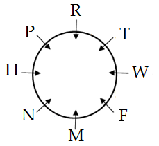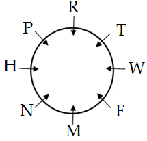 M, N, P, R, T, W, F and H are sitting around a circle facing the centre. P is third to the left of M and second to the right of T. N is second to the right of P. R is second to the right of W, who is second to the right of M. F is not an immediate neighbour of P.
