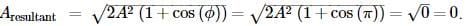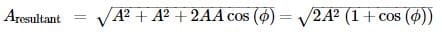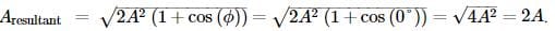 Two waves of equal amplitude A, and equal frequency travel in the same direction in a medium. The amplitude of the resultant wave is