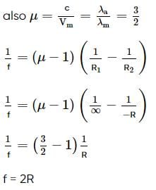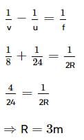 The image of an object, formed by a plano - convex lens at a distance of 8 m behind the lens, is real and is one-third the size of the object. The wavelength of light inside the lens is 2/3 times the wavelength in free space. The radius of the curved surface of the lens is