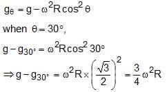 If Earth is supposed to be a sphere of radius 'R' and if 'g30°' is the value of acceleration due to gravity at a latitude of 30°, while 'g' is at the equator, the value of '(g - g30°)' is