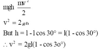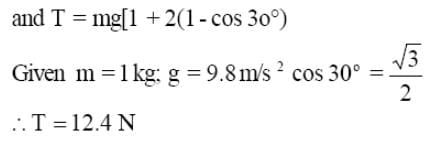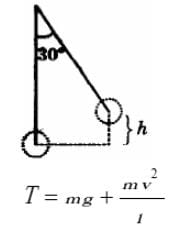 A mass of 1 kg suspended by a thread deviates through an angle of 30°. Find the tension of the thread at the moment the weight passes through the position of equilibrium?