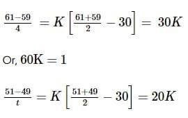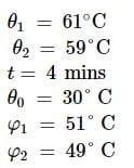 A body in laboratory takes 4 minutes to cool from 61℃ to 59℃. If the laboratory temperature is 30℃, then the time taken by it to cool from 51℃ to 49℃ is