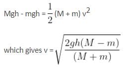 Two masses M and m (with M > m) are connected by means of a pulley as shown in the figure. The system is released. At the instant when mass M has fallen through a distance h, the velocity of mass m will be