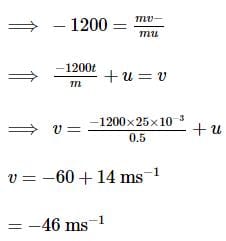 A force of 1200 N acts on a 0.5 kg steel ball as result of collision lasting 25 ms. If the force is in a direction opposite to the initial velocity of 14 ms then the final speed of the steel ball would be