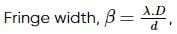 In a double-slit experiment, the separation between the slits is d=0.25 cm and the distance of the screen D=100 cm from the slits. If the wavelength of light used is