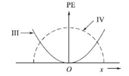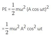 For a particle executing simple harmonic motion, the displacement x is given by x = A cosωt. Identify the graphs which represent the variation of potential energy (PE) as a function of time t and displacement x (see figure).
