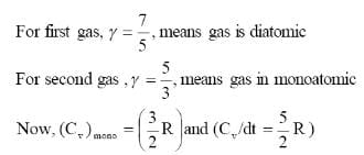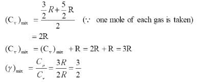 1 mole of a gas with γ = 7/5 is mixed with 1 mole of a gas with γ = 5/3, then the value of γ for the resulting mixture is