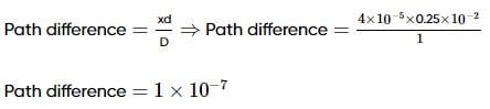 and I0 is the intensity of the central bright fringe, the intensity at a distance x=4 x 10−5 m from central maximum is