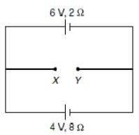 The figure below shows a circuit with two cells in opposition to each other. One cell has an emf of 6 V and internal resistance of 2Ω and the other cell has an emf of 4 V and internal resistance of 8Ω. The potential difference across the terminals X and Y is