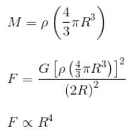 Two identical solid copper spheres of radius R are placed in contact with each other. The gravitational attraction between them is proportional to