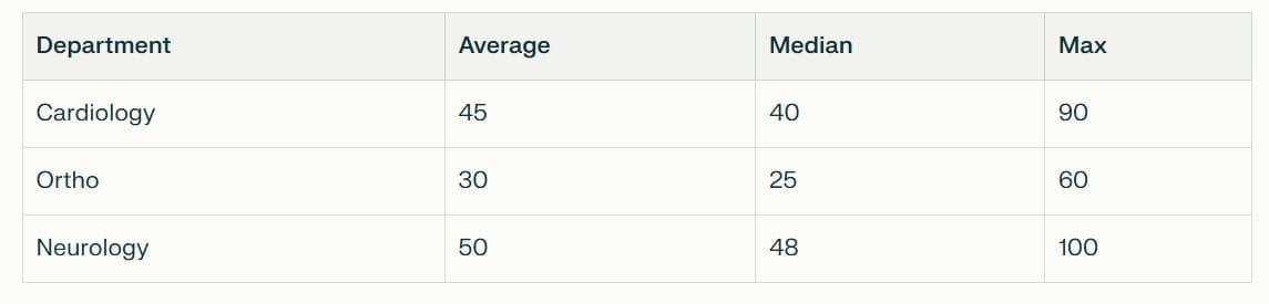 Which department had the highest difference between average and median wait time?