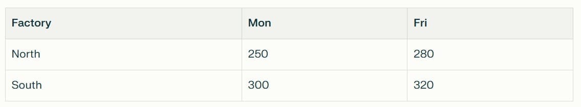 What was the percentage increase in North factory production from Monday to Friday?